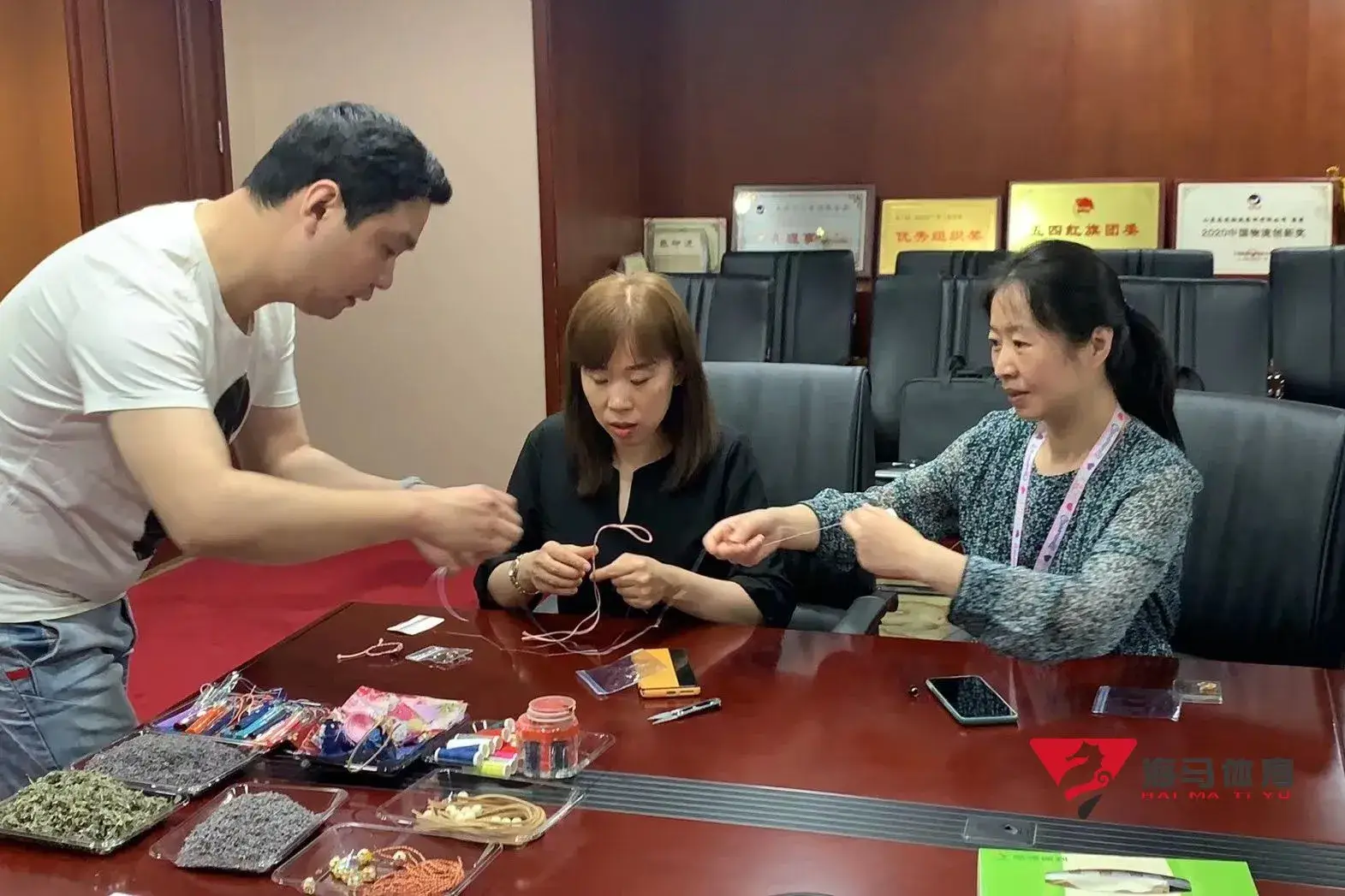 制作前,金年会的手工老师首先介绍了端午的习俗以及端午节制作香囊与五彩绳的来历,让大家在活动前了解端午的民俗文化,手工老师将精心准备的有着美好寓意的五色彩绳、色彩绚丽的香包袋以及清香的艾草薰衣草,送到职员手中,携手制作香包和五彩绳。